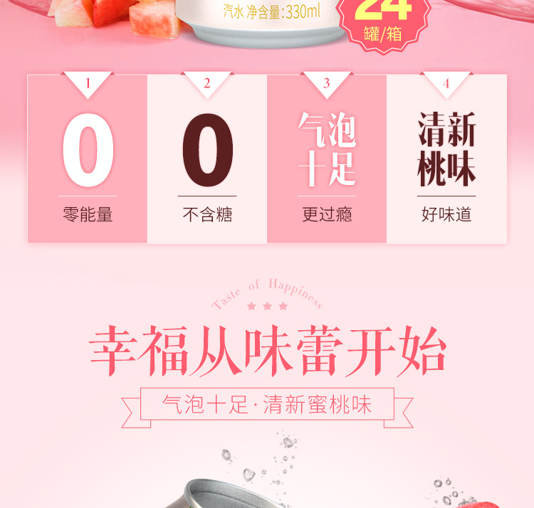 名仁 苏打水汽水 330ml*24罐 整箱装 无糖气泡水蜜桃味 汽水汤力水饮料