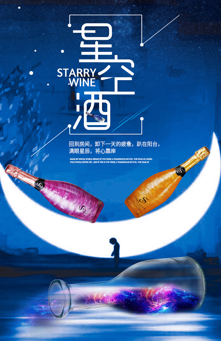 送2香槟杯 尚尼酒庄魔幻云星空酒起泡葡萄酒4支组合整箱 火焰酒女士钟爱的配制甜红酒气泡果酒 4*750ml
