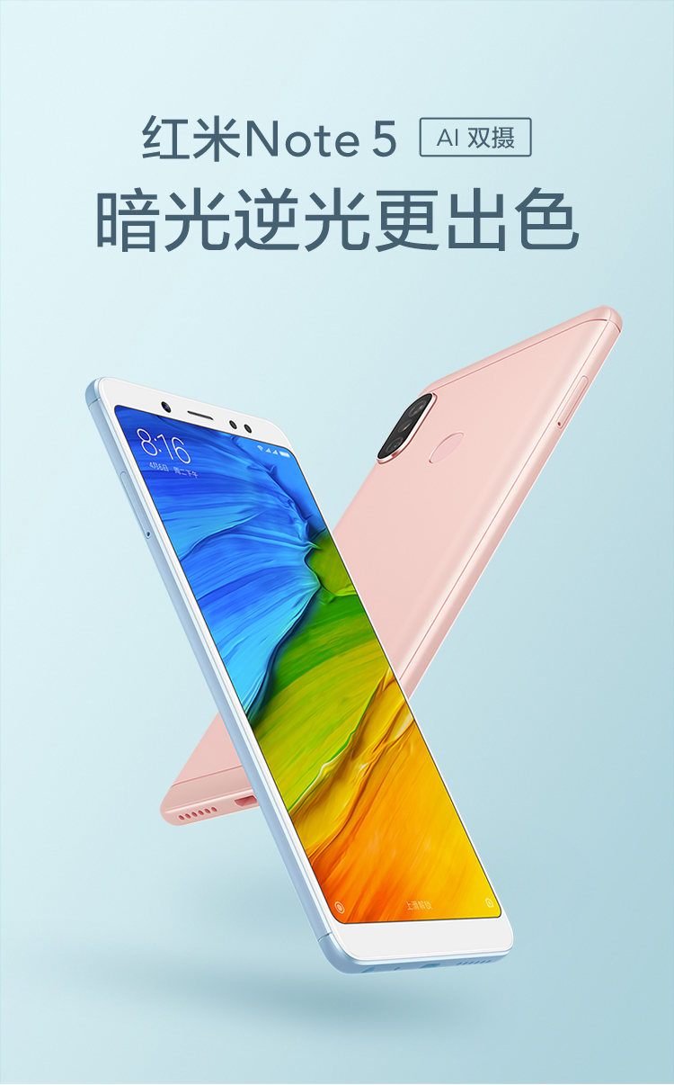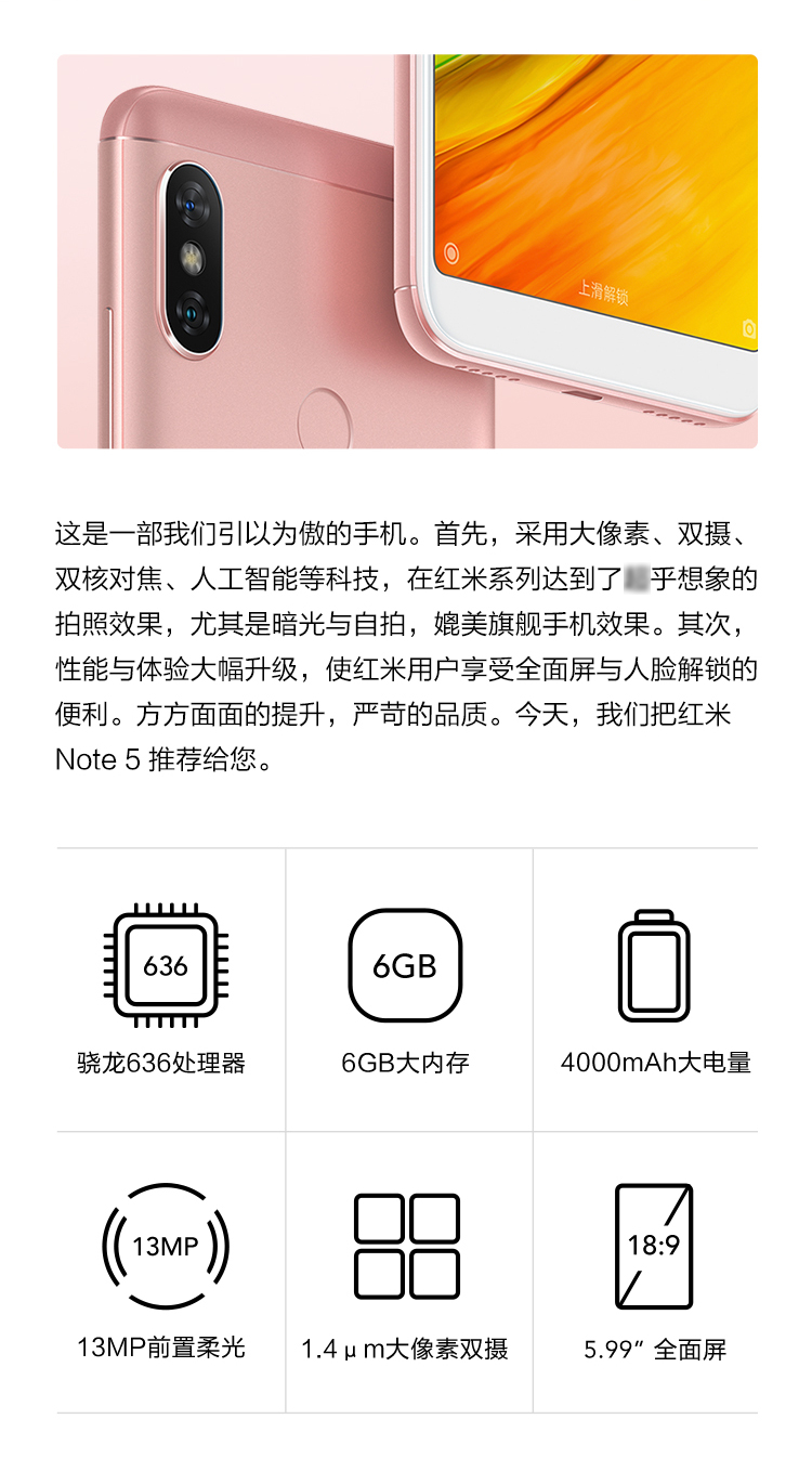 小米(MI) 红米Note5 全网通4G 智能手机 双卡双待 玫瑰金 4G+64G